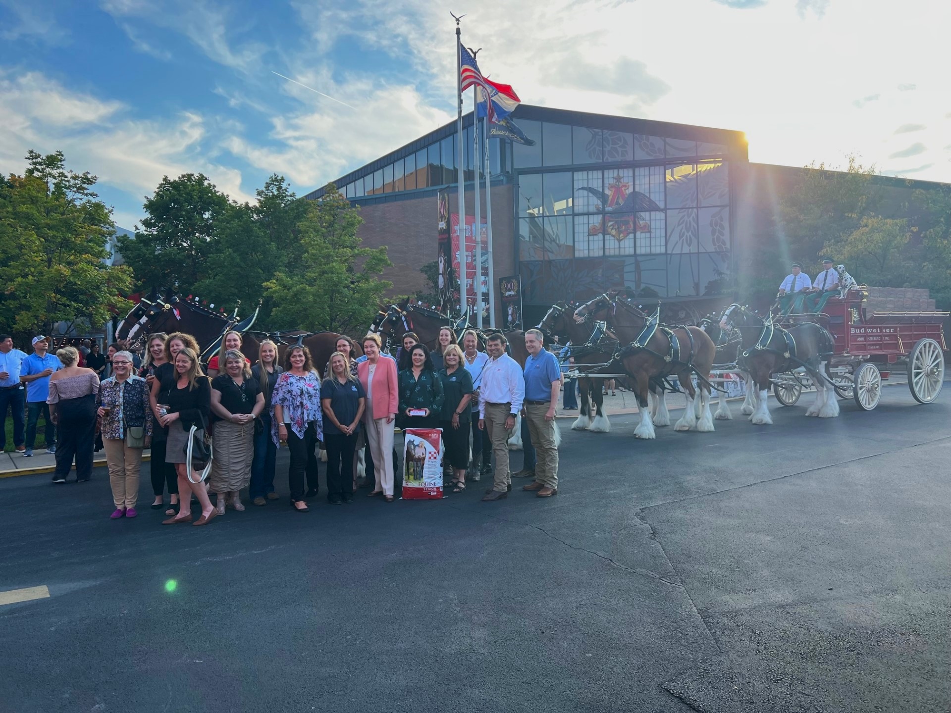 The fun continued into the next evening, when Longmeadow and Humane Society of Missouri staff and volunteers were invited to the Anheuser-Busch Brewery for a little happy hour following the day of volunteering. We were given a tour of the Clydesdale stables (where we saw Viktoria again!) and even got to see the famous Budweiser Clydesdale Hitch! At the end of the night, we were generously given donated bags of horse grain and Purina Feed Coupons.